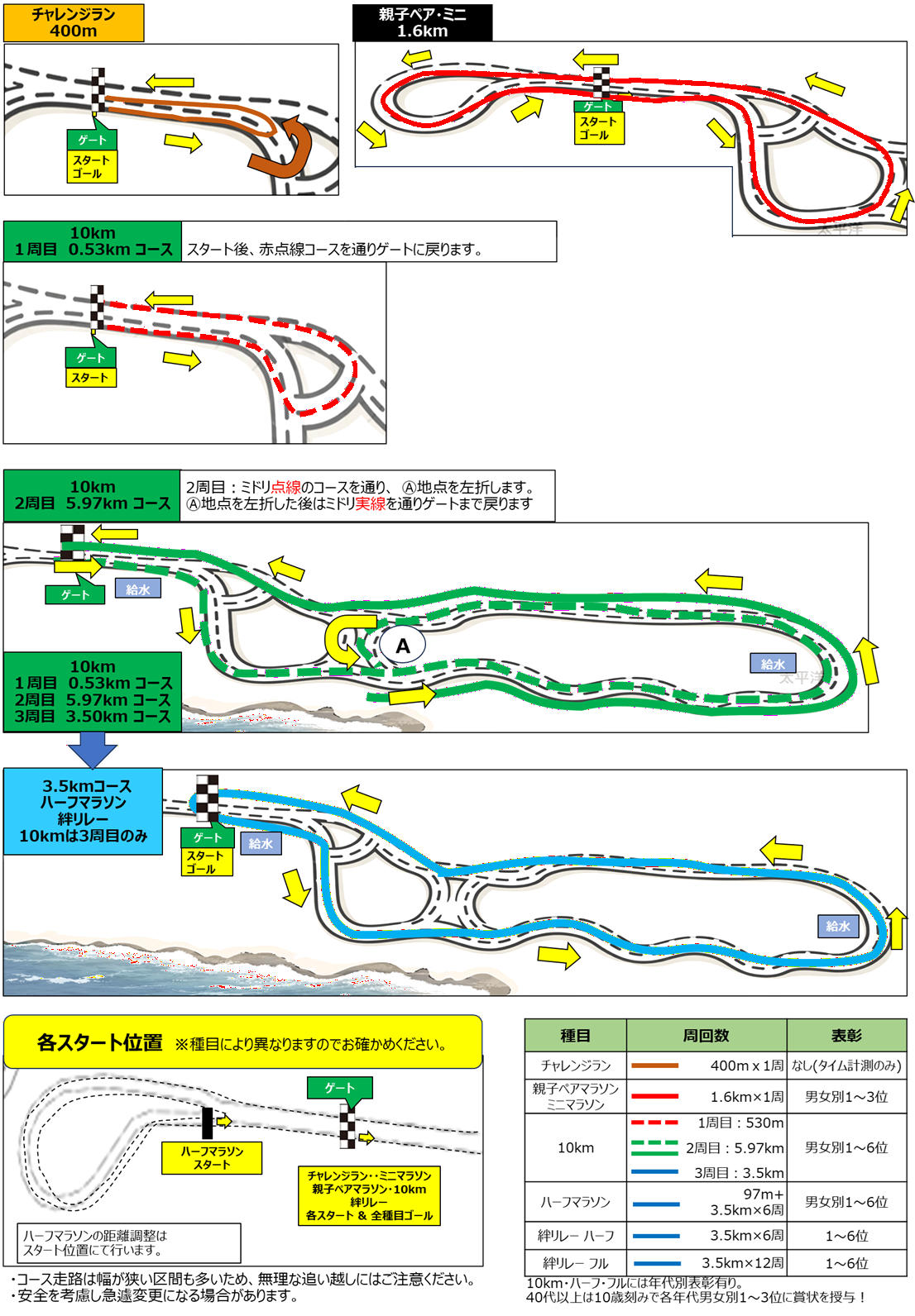 ※4 10km 1周目は530m、2周目は5.97km、3周目は3.5kmとなります。