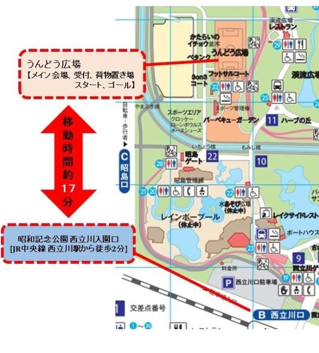 | 受付 | 国営昭和記念公園(うんどう広場)9:35~ 5km・10kmは11:00~ (受付終了は各種目スタート20分前) |